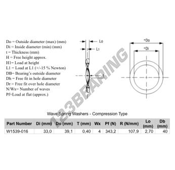 La Arandela Ondulada De Compresión con la referencia WSW-CT-39.100-33-0.400-4 tiene un diámetro interior de 33 mm, un diámetro exterior de 39.1 mm y un espesor de 0.4 mm. Está fabricado con el material ACERO.