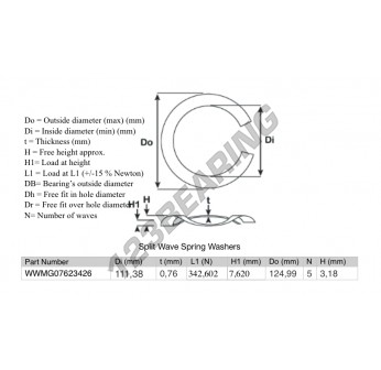 La Arandela Elástica Ondulada Partida con la referencia SWSW-124.99-111.38-0.76-5 tiene un diámetro interior de 111.38 mm y un espesor de 0.76 mm. Está fabricado con el material ACERO.