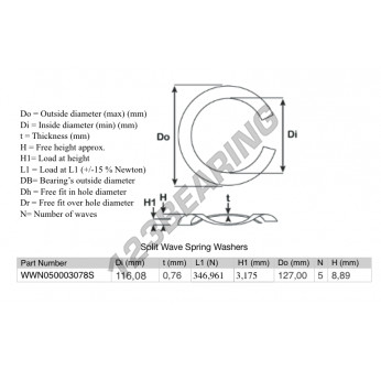 La Arandela Elástica Ondulada Partida con la referencia SWSW-127-116.08-0.76-5-SS tiene un diámetro interior de 116.08 mm y un espesor de 0.76 mm. Está fabricado con el material ACERO INOXIDABLE.