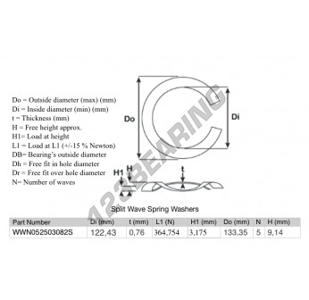 La Arandela Elástica Ondulada Partida con la referencia SWSW-136.53-125.48-0.76-5 tiene un diámetro interior de 125.48 mm y un espesor de 0.76 mm. Está fabricado con el material ACERO.