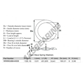 La Arandela Elástica Ondulada Partida con la referencia SWSW-180.01-159.16-0.81-6 tiene un diámetro interior de 159.16 mm y un espesor de 0.81 mm. Está fabricado con el material ACERO.