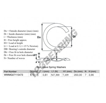 La Arandela Elástica Ondulada Partida con la referencia SWSW-200-179.16-0.81-7 tiene un diámetro interior de 179.16 mm y un espesor de 0.81 mm. Está fabricado con el material ACERO.