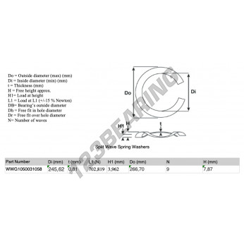 La Arandela Elástica Ondulada Partida con la referencia SWSW-266.70-245.62-0.81-9 tiene un diámetro interior de 245.62 mm y un espesor de 0.81 mm. Está fabricado con el material ACERO.