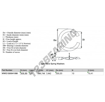 La Arandela Elástica Ondulada Partida con la referencia SWSW-330.20-308.86-0.81-10 tiene un diámetro interior de 308.86 mm y un espesor de 0.81 mm. Está fabricado con el material ACERO.