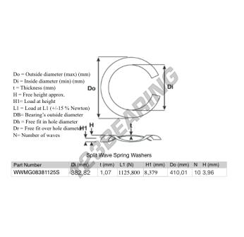 La Arandela Elástica Ondulada Partida con la referencia SWSW-410.010-382.820-1.070-10-SS tiene un diámetro interior de 382.82 mm y un espesor de 1.07 mm. Está fabricado con el material ACERO INOXIDABLE.