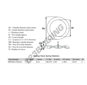 La Arandela Elástica Ondulada Superpuesta con la referencia OWSW-34.930-27.690-0.410-3 tiene un diámetro interior de 27.69 mm y un espesor de 0.41 mm. Está fabricado con el material ACERO.