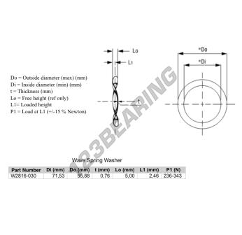 La Arandela Elásticas Ondulada con la referencia WSW-71.53-55.88-0.76 tiene un diámetro interior de 55.88 mm y un espesor de 0.76 mm. Está fabricado con el material ACERO.