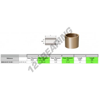 El Casquillo Bronce conocido por la referencia BAI44.45-57.15-38.1 Genérico tiene un diámetro interior de 44.45 mm, un diámetro exterior de 57.15 mm y una longitud de 38.1 mm. Está hecho de .