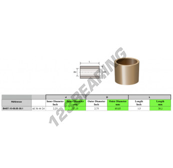 El Casquillo Bronce conocido por la referencia BAI57.15-69.85-38.1 Genérico tiene un diámetro interior de 57.15 mm, un diámetro exterior de 69.85 mm y una longitud de 38.1 mm. Está hecho de .