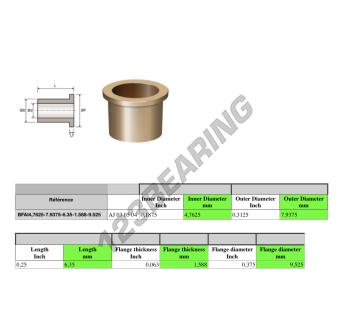 El Casquillo Bronce Con Collarín conocido por la referencia BFAI4.7625-7.9375-9.525-1.588-6.35 Genérico tiene un diámetro interior de 4.763 mm, un diámetro exterior de 7.938 mm y una longitud de 6.35 mm. Está hecho de .