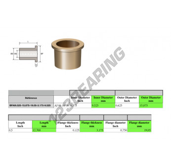 El Casquillo Bronce Con Collarín conocido por la referencia BFAI9.525-15.875-19.05-3.175-12.70 Genérico tiene un diámetro interior de 9.525 mm, un diámetro exterior de 15.875 mm y una longitud de 12.7 mm. Está hecho de .