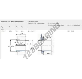 El Manguito, conocido como AH24030-SKF SKF, tiene un diámetro interior de 145 mm, un diámetro exterior de 150 mm y un espesor de 90 mm.