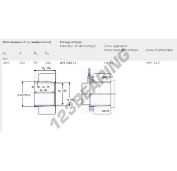 El Manguito, conocido como AH24032-SKF SKF, tiene un diámetro interior de 150 mm, un diámetro exterior de 160 mm y un espesor de 95 mm.
