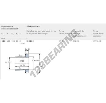 El Manguito, conocido como H3124-SKF SKF, tiene un diámetro interior de 110 mm, un diámetro exterior de 155 mm y un espesor de 120 mm.