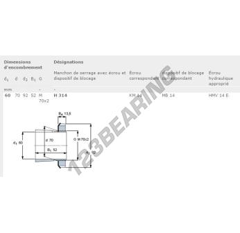 El Manguito, conocido como H314-SKF SKF, tiene un diámetro interior de 60 mm, un diámetro exterior de 92 mm y un espesor de 52 mm.