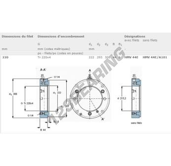 Esta tuerca tiene un diámetro interior de 222mm, un diámetro exterior de 306mm y un grosor de 44mm.
