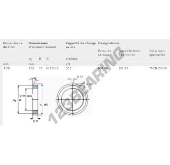 Esta tuerca tiene un diámetro interior de 130mm, un diámetro exterior de 165mm y un grosor de 21mm.