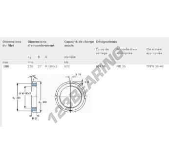 Esta tuerca tiene un diámetro interior de 180mm, un diámetro exterior de 230mm y un grosor de 27mm.