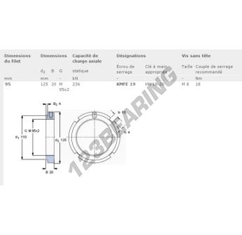 Esta tuerca tiene un diámetro interior de 95mm, un diámetro exterior de 125mm y un grosor de 20mm.