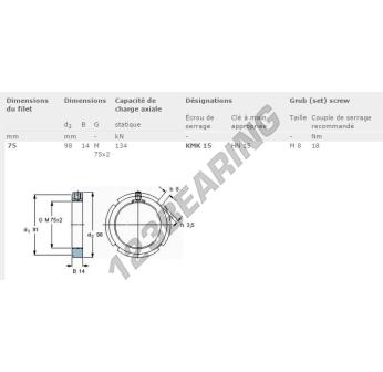 Esta tuerca tiene un diámetro interior de 75mm, un diámetro exterior de 98mm y un grosor de 14mm.