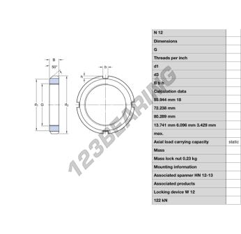 Esta tuerca tiene un diámetro interior de 59.944mm, un diámetro exterior de 80.289mm y un grosor de 13.741mm.