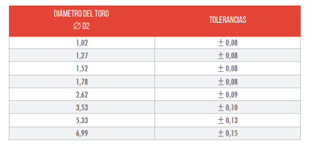 Las tolerancias relativas al toroide, según la norma ISO 3601-1:2008, son las siguientes:
