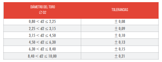 Las tolerancias relativas al diámetro interior, según la norma ISO 3601-1:2008, se determinan con el siguiente cálculo: