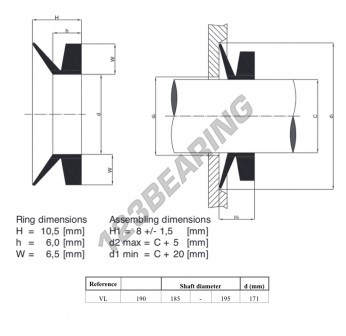 La Junta V-ring con la referencia VL190-NBR tiene un diámetro interior de mm y un espesor de mm. Está fabricado con el material NBR.