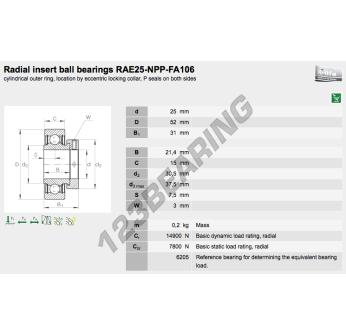 El Accesorio De Cojinete RAE25-XL-NPP-FA106-INA INA mide 25 mm de diámetro interior, 52 mm de diámetro exterior y 31 mm de espesor. Está fabricado en hierro fundido.