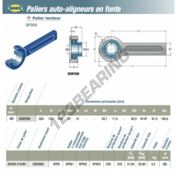 El Cojinete Hierro Fundido - 0 Fijación que se conoce por ESSP209-SNR SNR tiene un diámetro interior de [customProduit:produit:fld_axeAlesage] mm. Esta referencia está hecha de hierro fundido y el tipo de sujeción es .