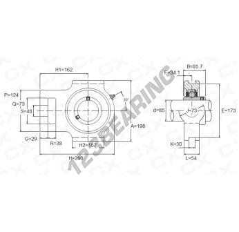 El Cojinete Hierro Fundido - 1 Fijación que se conoce por UCT217 Genérico tiene un diámetro interior de 85 mm. Esta referencia está hecha de hierro fundido y el tipo de sujeción es .