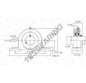 El Cojinete Hierro Fundido - 2 Fijaciones conocido como UCP318 Genérico tiene un diámetro de eje de 90 mm y un espaciamiento de fijación de 330 mm. Esta referencia se produce en hierro fundido y el tipo de fijación es .