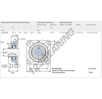 El Cojinete Hierro Fundido - 4 Fijaciones conocido como FY5-8-RM-SKF SKF tiene un diámetro de eje de 15.88 mm y un espaciamiento de fijación de 54 mm. Esta referencia se produce en hierro fundido y el tipo de fijación es .