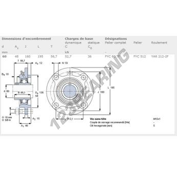 El Cojinete Hierro Fundido - 4 Fijaciones conocido como FYC60-TF-SKF SKF tiene un diámetro de eje de 60 mm y un espaciamiento de fijación de 113.1 mm. Esta referencia se produce en hierro fundido y el tipo de fijación es .