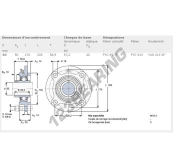 El Cojinete Hierro Fundido - 4 Fijaciones conocido como FYC65-TF-SKF SKF tiene un diámetro de eje de 65 mm y un espaciamiento de fijación de 120.2 mm. Esta referencia se produce en hierro fundido y el tipo de fijación es .