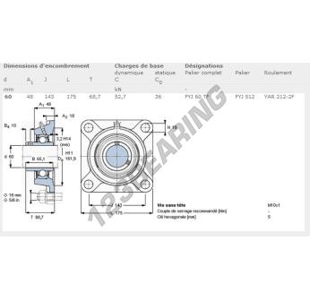 El Cojinete Hierro Fundido - 4 Fijaciones conocido como FYJ60-TF-SKF SKF tiene un diámetro de eje de 60 mm y un espaciamiento de fijación de 143 mm. Esta referencia se produce en hierro fundido y el tipo de fijación es .