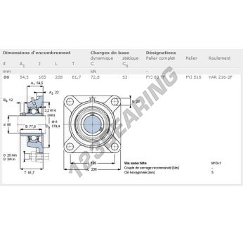 El Cojinete Hierro Fundido - 4 Fijaciones conocido como FYJ80-TF-SKF SKF tiene un diámetro de eje de 80 mm y un espaciamiento de fijación de 165 mm. Esta referencia se produce en hierro fundido y el tipo de fijación es .
