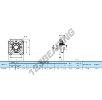El Cojinete Hierro Fundido - 4 Fijaciones conocido como UCFX18 Genérico tiene un diámetro de eje de 90 mm y un espaciamiento de fijación de 171 mm. Esta referencia se produce en hierro fundido y el tipo de fijación es .