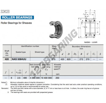 El Rodamiento De Agujas, conocido como NAS5084-UU-IKO IKO, tiene un diámetro interior de 420 mm, un diámetro exterior de 620 mm y un espesor de 272 mm.