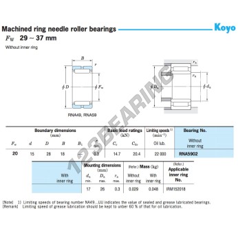 El Rodamiento De Agujas, conocido como RNA5902-JTEKT JTEKT, tiene un diámetro interior de 20 mm, un diámetro exterior de 28 mm y un espesor de 18 mm.