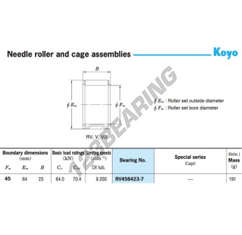 El Rodamiento De Agujas, conocido como RV456423-7-JTEKT JTEKT, tiene un diámetro interior de 45 mm, un diámetro exterior de 64 mm y un espesor de 23 mm.