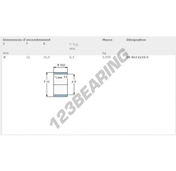 El Aro Interior conocido por la referencia IR8-12-10.5-SKF SKF tiene un diámetro interior de 8 mm, un diámetro exterior de 12 mm y una longitud de 10.5 mm. Está hecho de .