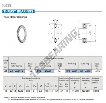 El Rodamiento Axial De Agujas, conocido como AZK40606-IKO IKO, tiene un diámetro interior de 40 mm, un diámetro exterior de 60 mm y un espesor de 6 mm.
