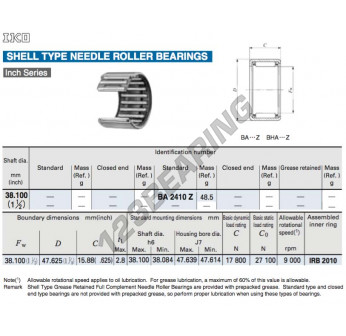 El Buje De Agujas, conocido como BA2410-ZOH-IKO IKO, tiene un diámetro interior de 38.1 mm, un diámetro exterior de 47.63 mm y un espesor de 15.88 mm.