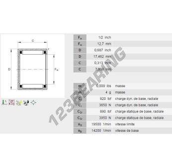 El Buje De Agujas, conocido como BCE85-INA INA, tiene un diámetro interior de 12.7 mm, un diámetro exterior de 17.46 mm y un espesor de 7.92 mm.