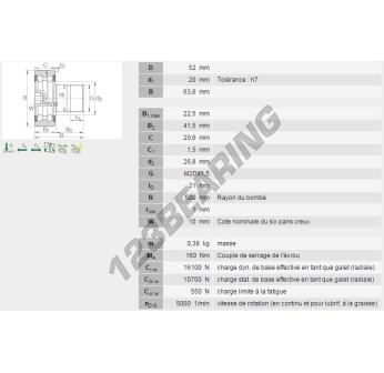 El Seguidor De Leva, conocido como KR5204-2RS-INA INA, tiene un diámetro interior de 20 mm, un diámetro exterior de 52 mm y un espesor de 63.6 mm.