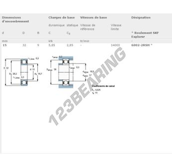 El Rodamiento De Bolas, conocido como 6002-2RSH-SKF SKF, tiene un diámetro interior de 15 mm, un diámetro exterior de 32 mm y un espesor de 9 mm.