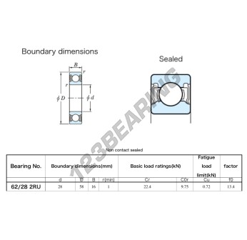 El Rodamiento De Bolas, conocido como 62-28-2RU-JTEKT JTEKT, tiene un diámetro interior de 28 mm, un diámetro exterior de 58 mm y un espesor de 16 mm.