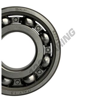 El Rodamiento De Bolas, conocido como 6203-SKF SKF, tiene un diámetro interior de 17 mm, un diámetro exterior de 40 mm y un espesor de 12 mm.