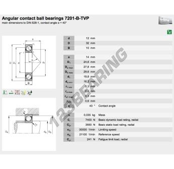 El Rodamiento De Bolas, conocido como 7201-B-XL-TVP-FAG FAG, tiene un diámetro interior de 12 mm, un diámetro exterior de 32 mm y un espesor de 10 mm.